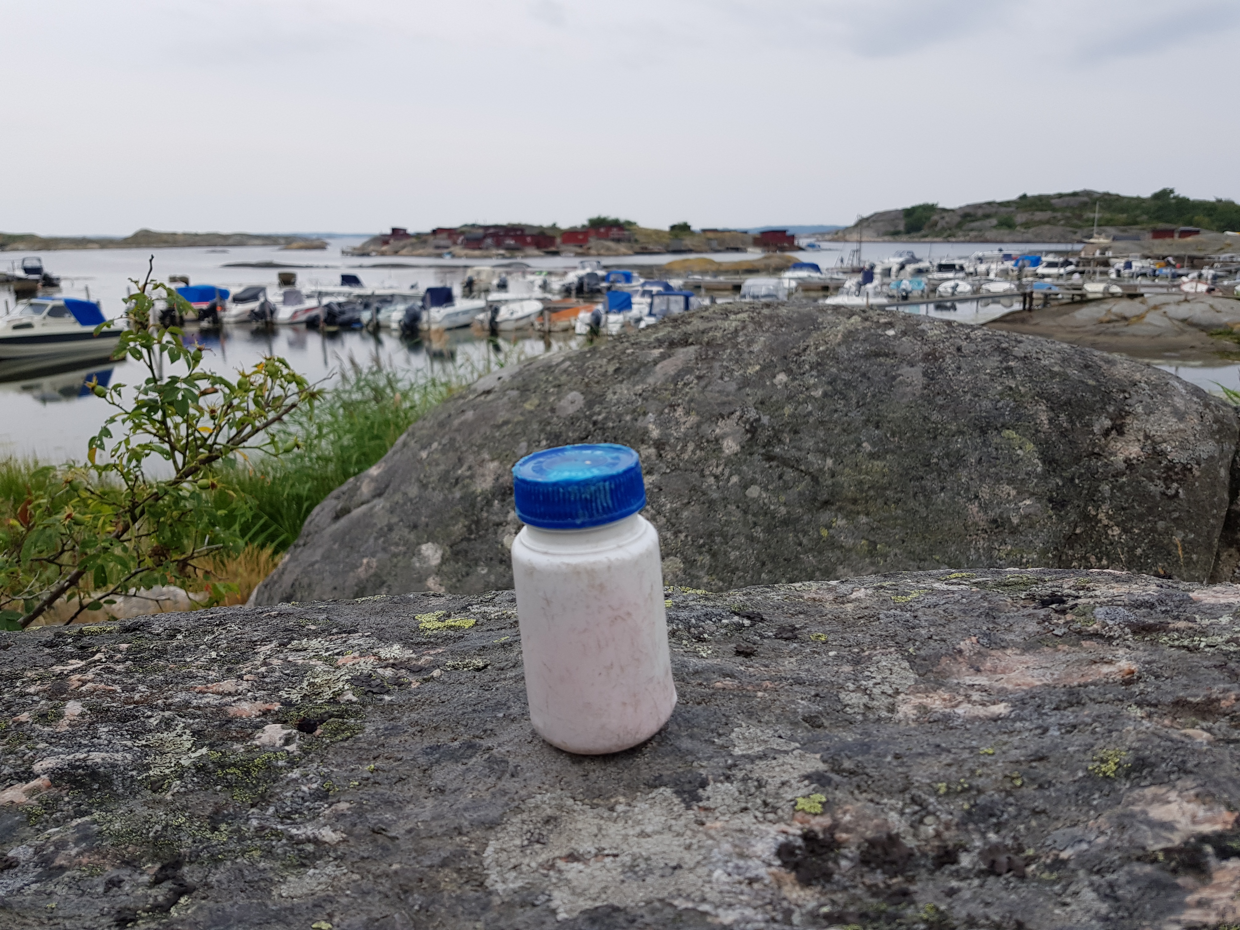 Här blev det till att ta av alla kläder (eller?) och gå vidare mot cachen Smithska Uddens nakenbad. Området var helt öde så jag kunde leta efter denna synnerligen välgömda cache. Slutligen visade den sig i all sin nakenhet och jag kunde få min logg och sedan snabbt lämna platsen! På väg mot ALC rundans sista steg kom jag fram till Smithska Uddens Småbåtshamn som givetvis också loggades.