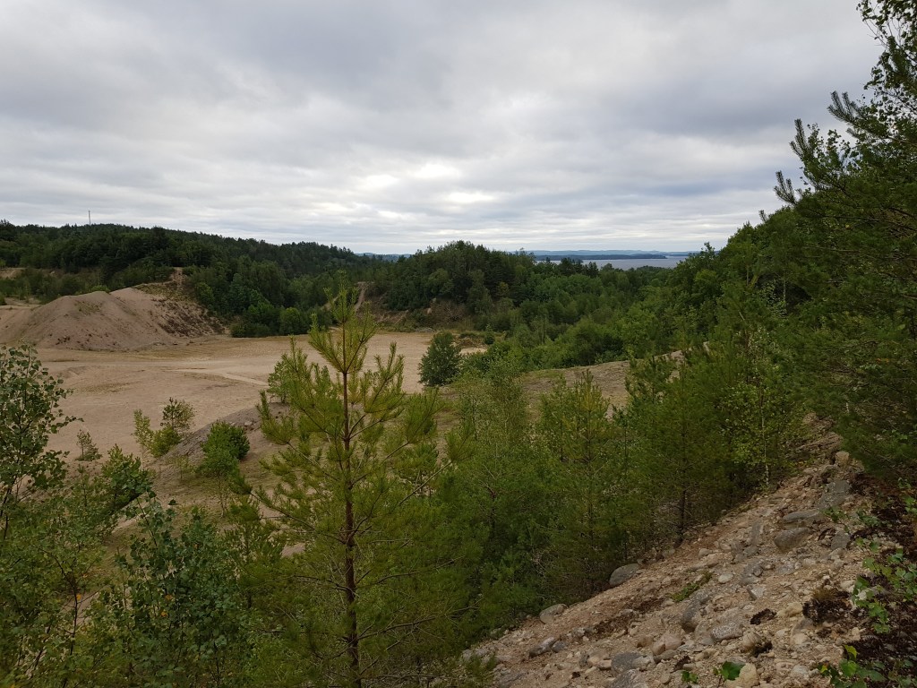 I samband med vandringarna passade jag även på att logga andra närbelägna burkar. Vid Vackraste vyn över Mjörn? kunde jag konstatera att växtligheten haft god fart sedan 2013. Den utlovade utsikten – den fanns inte längre! Bättre utsikt var det vid den närbelägna Earth cachen Rullstensåsen i Gråbo.