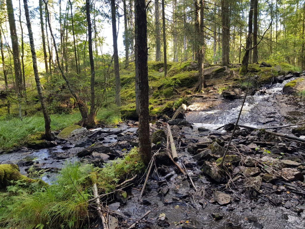 Vid startkoordinaterna till multin Hardcore DNF? – En tur i vattnets tecken anlände efter en stund TMR68 och jsson. Det första delsteget hade jag avklarat från den parkeringsplatsen jag valt, som inte var den som angavs i cachens waypoint. Vi kunde därför gå direkt mot det andra delsteget i multin.