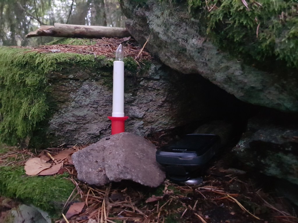 Jag har länge undrat hur ett insektsspöke kan se ut, är det en genomskinlig fluga eller en skräckinjagande spindel? Förr eller senare så lär väl svaret komma har jag tänkt! Denna lördag, efter en vecka där alla vardagar liksom förra helgen fyllts av icke-geocachingaktiviteter, var det läge att värma upp med en mindre tur strax söder om Göteborg. Mitt första stopp för dagen blev vid Finnsjön där en lämplig plats till Rulle T hittades innan jag själv snörade på kängorna och begav mig ut på stigarna, första burken för dagen blev Ett ljus i mörkret.
