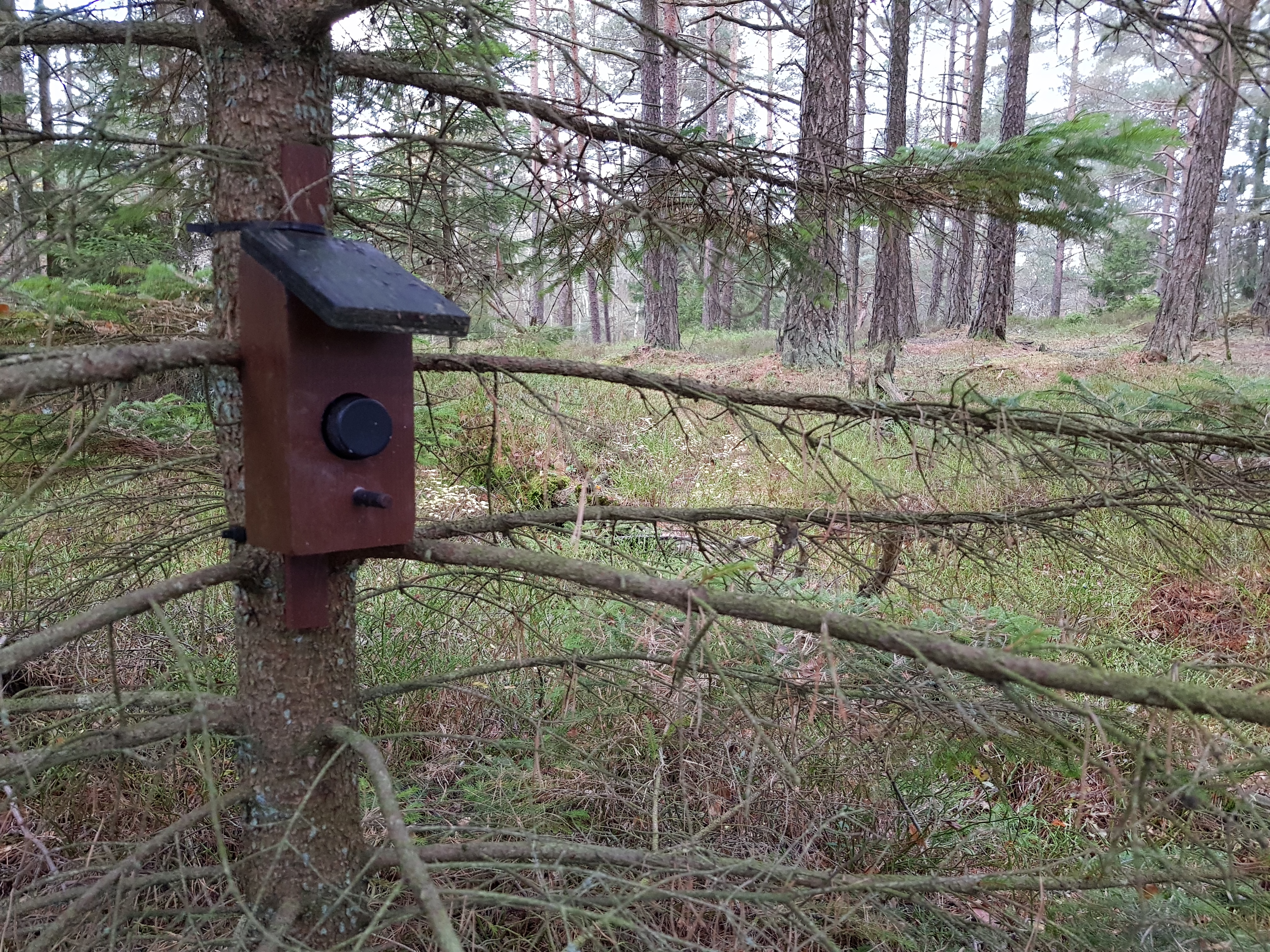 Burken var snabbt hittad och med raska steg begav jag mig mot #4. Ungefär halvvägs såg jag något stort och mörkbrunt som rörde sig bakom en gran, strax efter en något mindre ljusbrun och sedan ytterligare en stor mörkbrun figur… En hel älgfamilj var ute på språng och tvärvände när de fick se den hemska uppenbarelsen i form av Hallén. Det hela var över på några sekunder, varken mobilkamera eller systemkameran i ryggsäcken var möjliga att få fram i tid för en bild, men det var en fin naturupplevelse under vandringen som fick fotograferas i det biologiska internminnet!