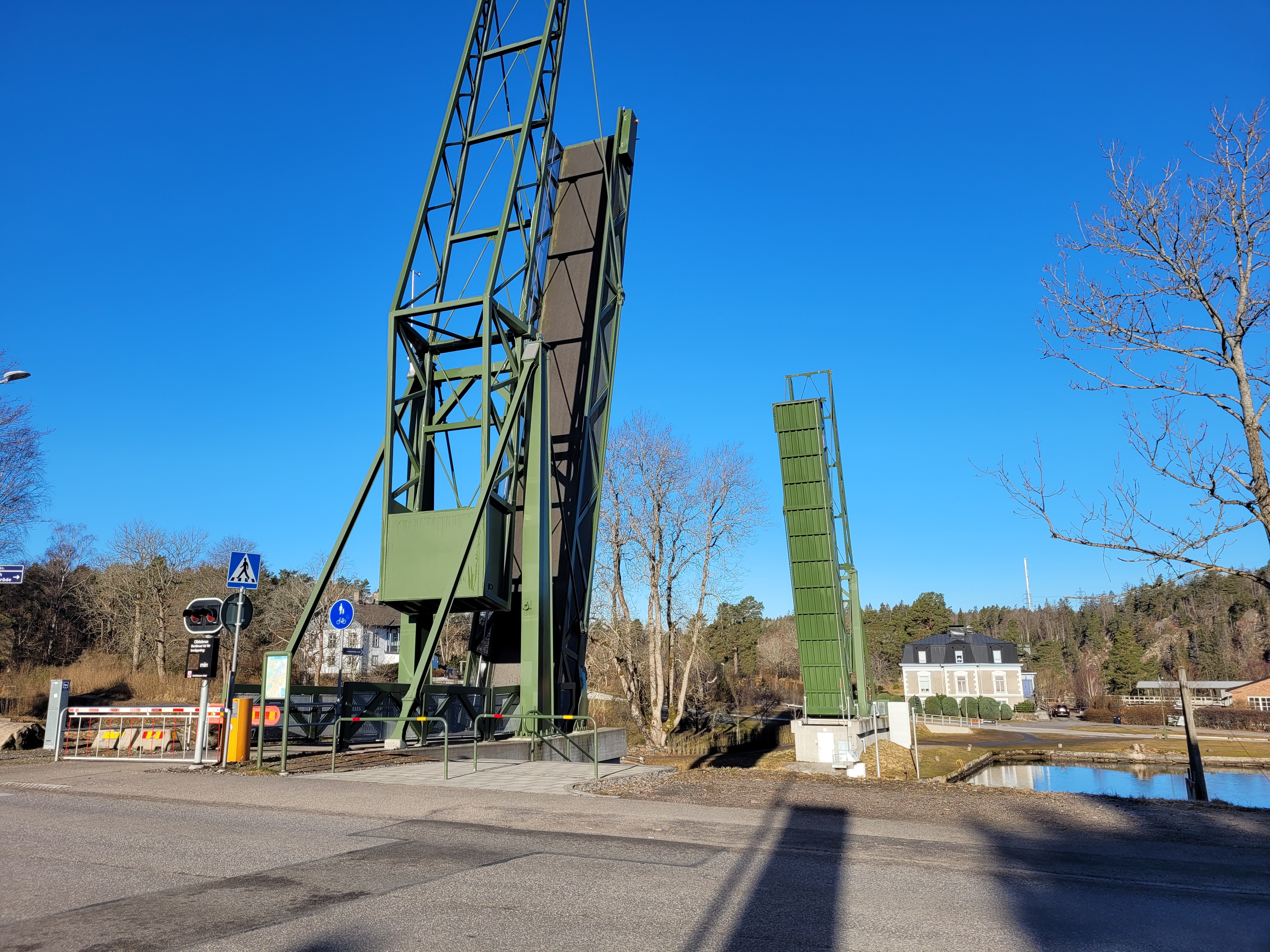 Det fanns en skylt som informerade att bron skulle vara öppen – alltså stängd för mig – i ytterligare 20 minuter. Så länge hade jag inte lust att stå och vänta så jag ändrade riktning och tog mig med långa kliv mot ALC rundan Trollhättans Street Art. Det var nämligen dagens huvudmål att logga de tre ALC rundorna i Trollhättan. Rundan gick bra och snart var även finalen loggad. Därifrån var det inte några problem att korsa vattnet och ta mig ut på öarna mellan de olika slusslederna.