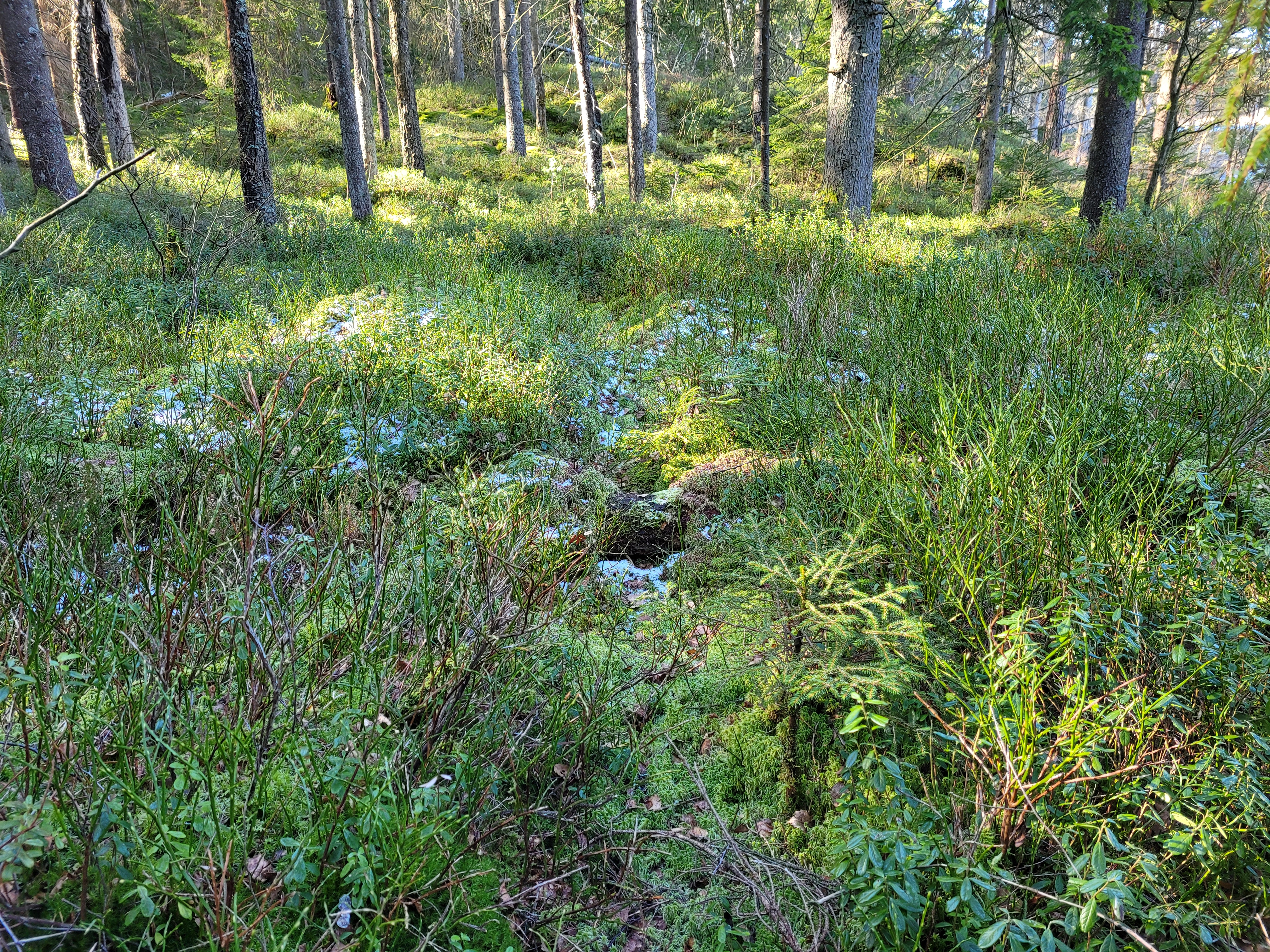 Vandringen gick genom många olika typer av terräng. Bitvis var det små vägar, stigar eller inga stigar alls. Tyvärr hade skogsmaskinerna gjort ganska stora skador runt om sjön och skapat en terräng med djupa hjulspår och ris utlagt över stora ytor som kunde vara smått besvärliga att passera. Runt om sjön ligger en del sommarstugor, en del i mycket gott skick, medan andra var mer för den händige!