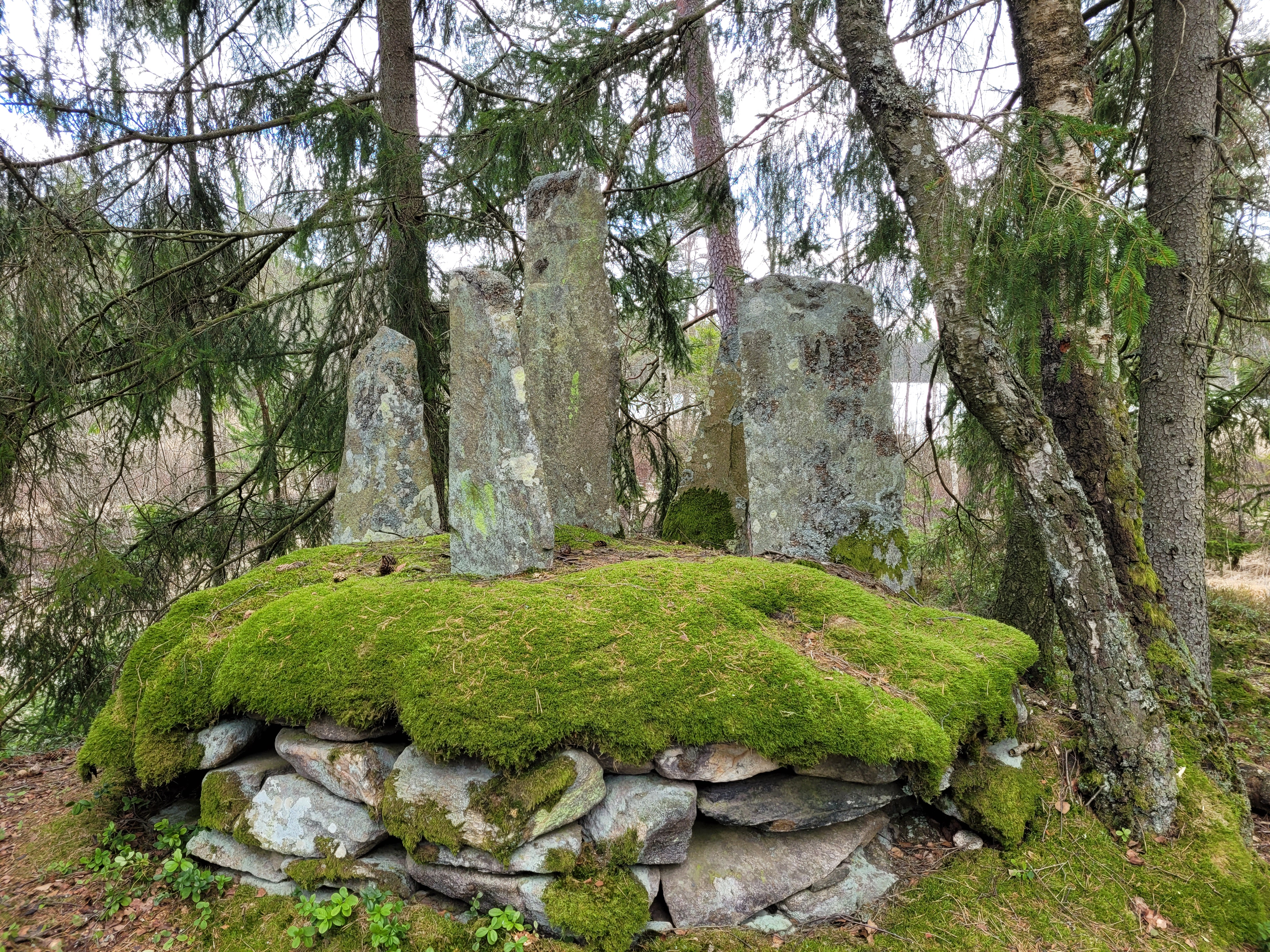 En lite speciell burk under dagens vandring var Fem Stena Rör Vättle, en rejäl gränsmarkering för häradet. Burken var utlagd i maj 2004, några månader efter att jag hade gått en gps-kurs med Gustaaf, CO till denna cache, som ledare. Det var den kursen som fick mig att börja leta cacher….