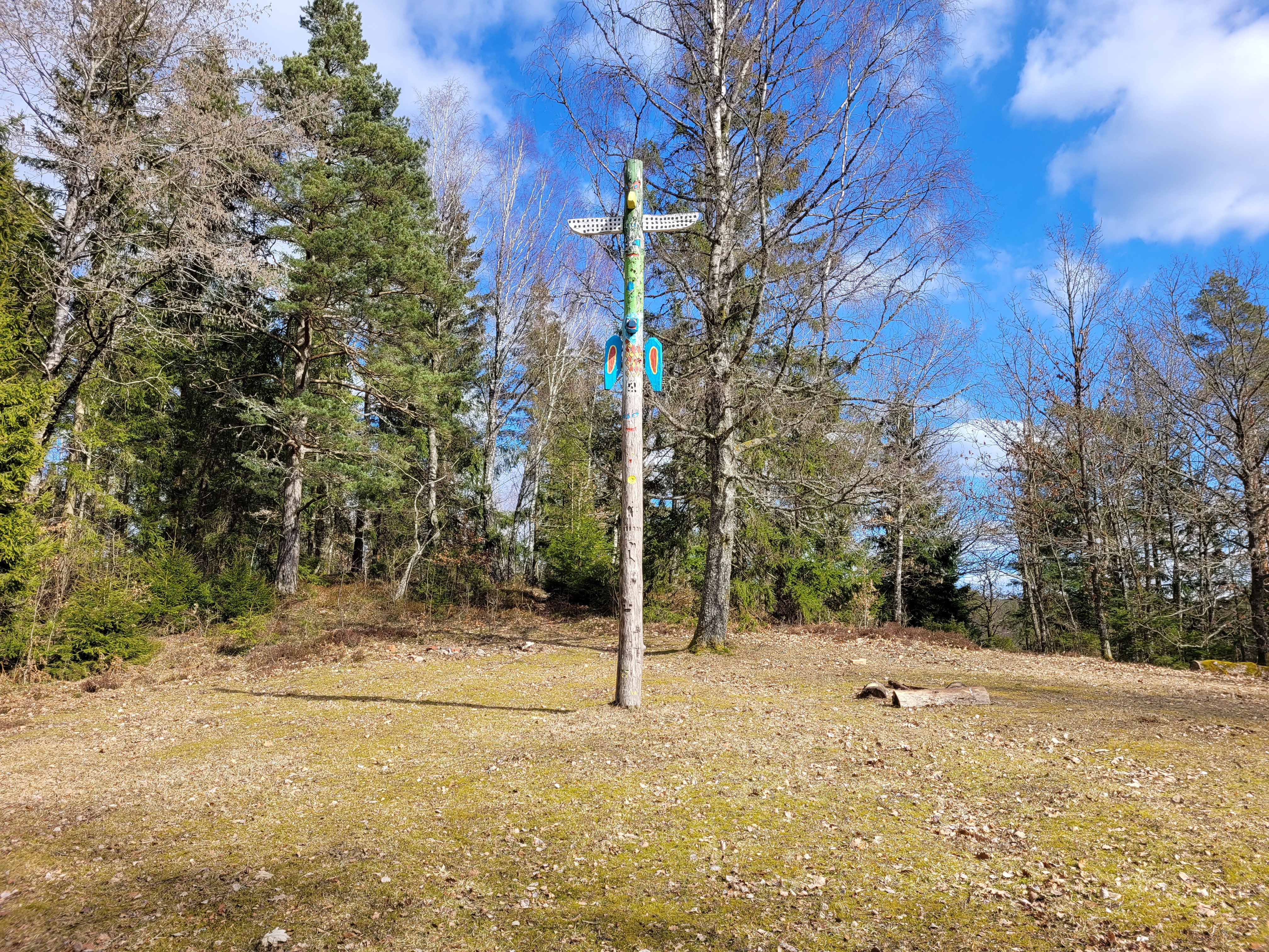 Efter att ha passerat ett risigt hygge kunde jag slutligen logga burk #1 i serien och det var dags att börja tänka på vandringen tillbaka mot Rulle T som väntade på parkeringen vid Härskogen. Men först skulle serien utmed Stigen till Sundet klaras av, när dagens 36:e burk var loggad gick sedan vandringen åter mot Härskogens parkering. Där kunde jag konstatera att det blivit 30 kilometers vandring i dag och 42 000 steg…