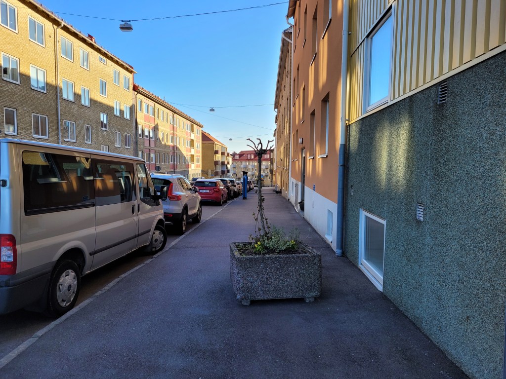 Förmiddagsvandringen gick nu vidare mot Överås och multin Överåsparken #1. Tidigare loggar avslöjade att det skulle gå att lösa steg 1 och 2 hemifrån, men jag tyckte att det var lika bra att gå till samtliga steg. Att räkna trappsteg, som en av uppgifterna gick ut på, kan vara vanskligt. Men denna gång överensstämde min beräkning med utläggarens och jag belönades med en hittad burk.