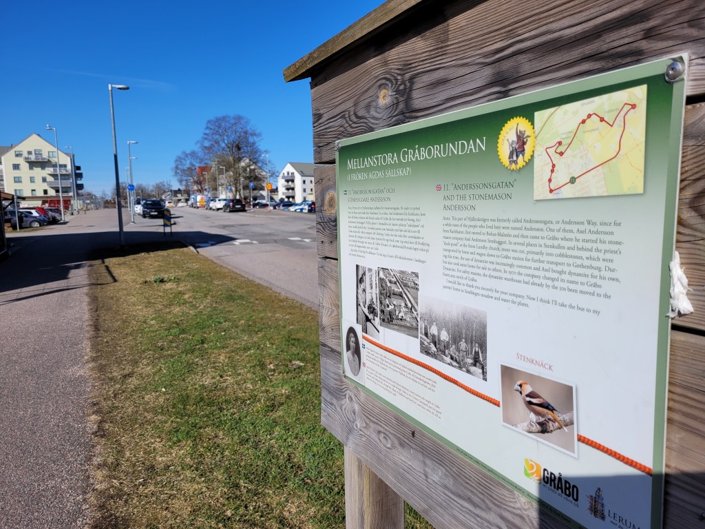 Efter en kortare förflyttning nådde jag fram till Gråbo och starten för nästa ALC ”Historisk promenad i Gråbo”. Detta var en lite kortare runda men den var fylld med information kring det lilla samhällets historia. Hittade dessutom ett par ”bonusskyltar” utmed vägen innan jag slutligen kunde logga bonusburken! När den var signerad så passade jag på att förvandla en gammal DNF till en found genom att logga En ordinär hundpromenad #1 som nu hade fått en ny placering, något jag först inte uppmärksammade utan gick till den gamla platsen. Man kanske borde titta på sin gps?