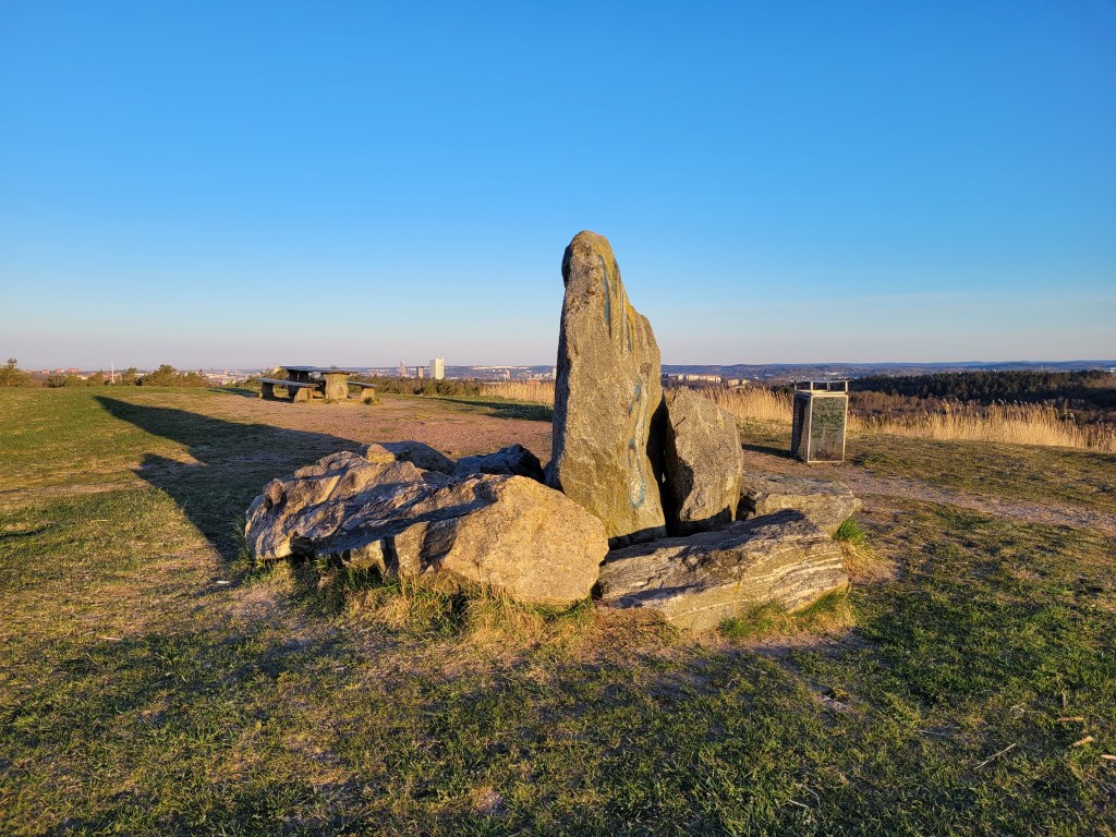 Nu var det dags att bestiga Brudaremossens gamla sopberg och beskåda stenarna på toppen och ta det obligatoriska fotot. För att hitta till denna plats behövde jag inte titta på min gps en enda gång. Utsikten från denna plats är alltid fantastiskt, inte minst en så solig vårförmiddag som i dag!