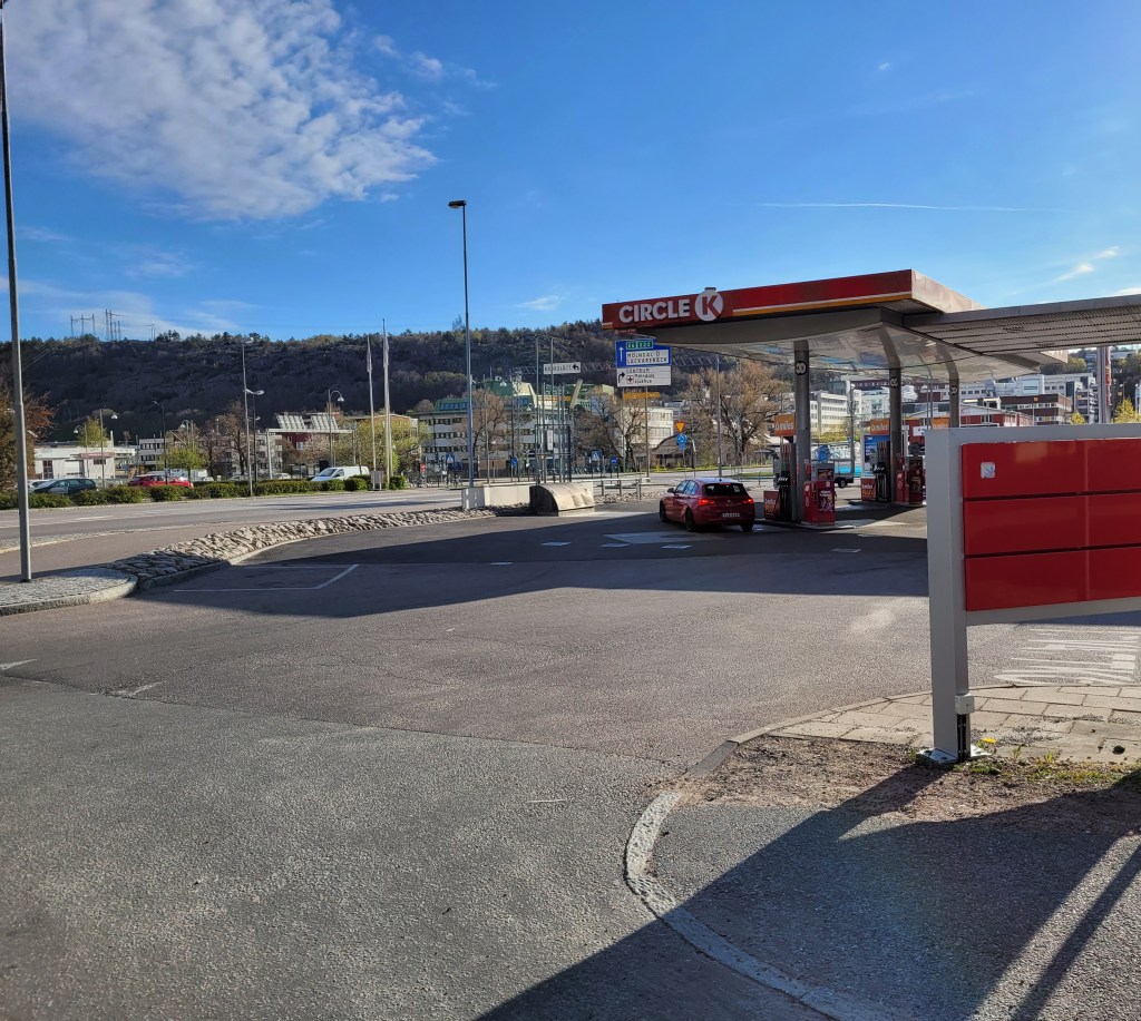 När jag återvänt till parkeringen uppkom idén att ge Rulle T lite flytande föda och dessutom få loggat ännu en burk i dag. Inte allt för avlägset låg nämligen cachen Petroleum Tango #418. Efter en färd genom de små och smala gatorna nåddes dalgången med lite större färdvägar och snart fylldes Rulle T:s mage med den flytande födan och därefter gick jag bort och loggade burken, därefter färd hem mot cachingbasen 6 loggar rikare.
