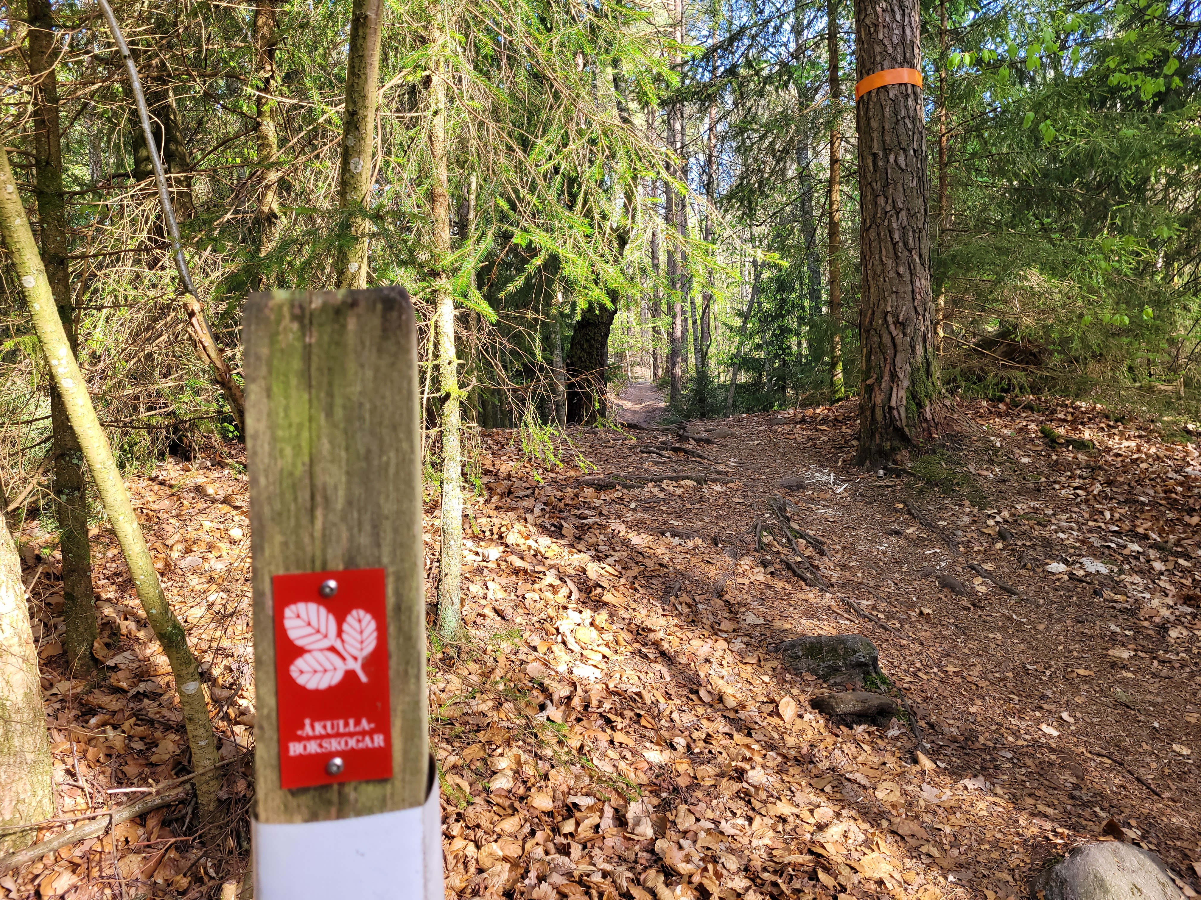 När rundan kring sjön var avklarad gick jag mot nästa runda, det var inte någon mening att ta med Rulle T då transportsträckan var knappt 500 meter. Där väntade serien Bockstensstigen, som gick genom ett historiskt landskap. Bokskogen var mycket vacker och överallt fanns lämningar i form av rösen, stenmurar och en och annan hålväg.