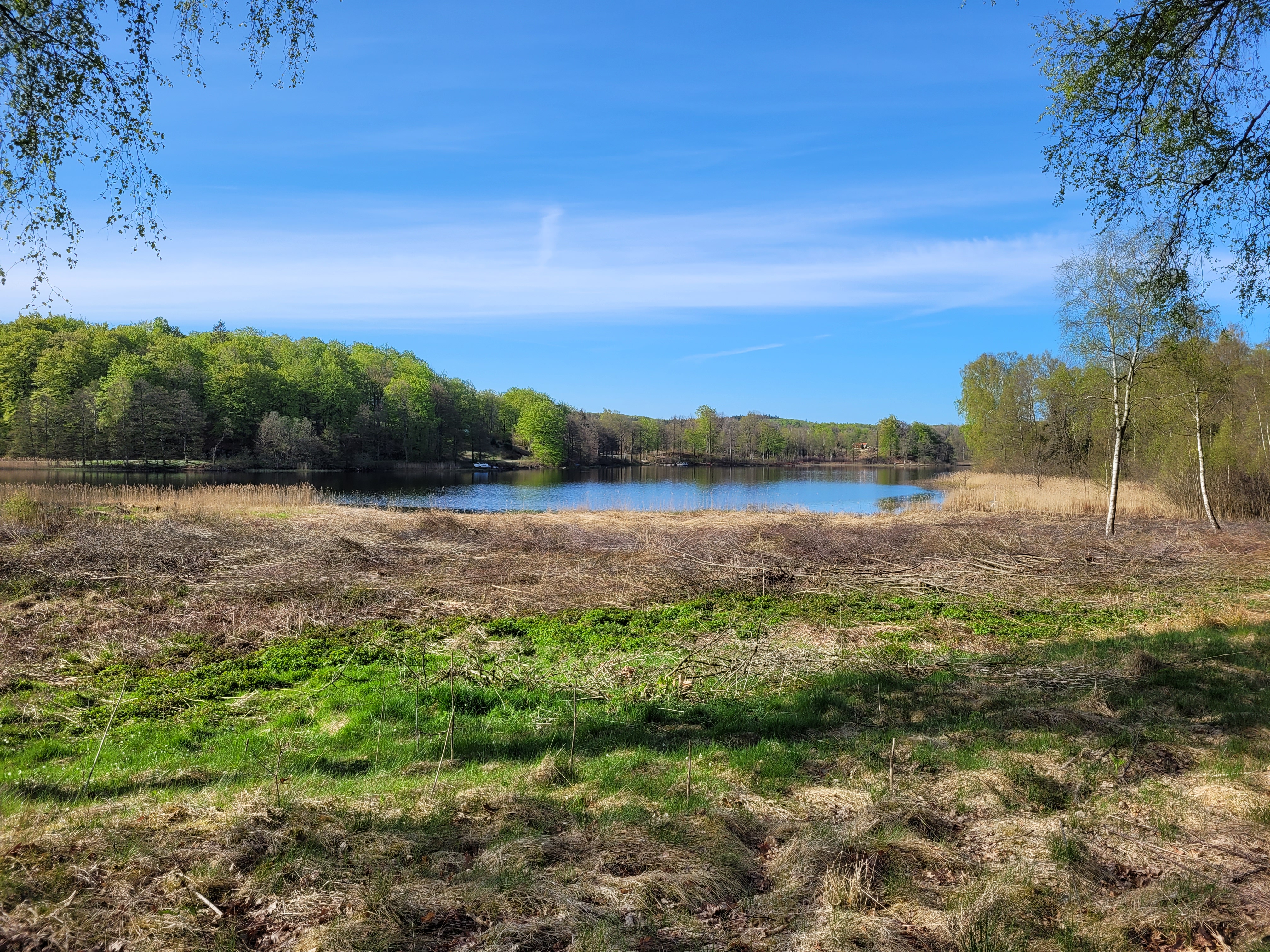Efter denna framgångsrika start på dagen rullade jag vidare, ett snabbt stopp vid Grimeton Kyrka, sedan vidare mot dagens första lite längre vandring runt Yasjön. Totalt har det funnits 18 cacher i denna serie men #12 och #13 är arkiverade, dessutom var #18 spårlöst försvunnen, det verkade nyligen ha skett en ombyggnad på platsen, det kan ha påverkat cachen. Det blev en mycket fin vandring kring sjön och resterande cacher kunde hittas utan allt för stora problem. Vid starten fanns banderoller för en ”vandringsfesteval”, jag fruktade därför att få mugglarproblem, men så blev det inte. Antagligen hade vandringsmugglarna inte vaknat ännu, och därmed missat den bästa tidpunkten på dagen – vilket givetvis gladde mig.