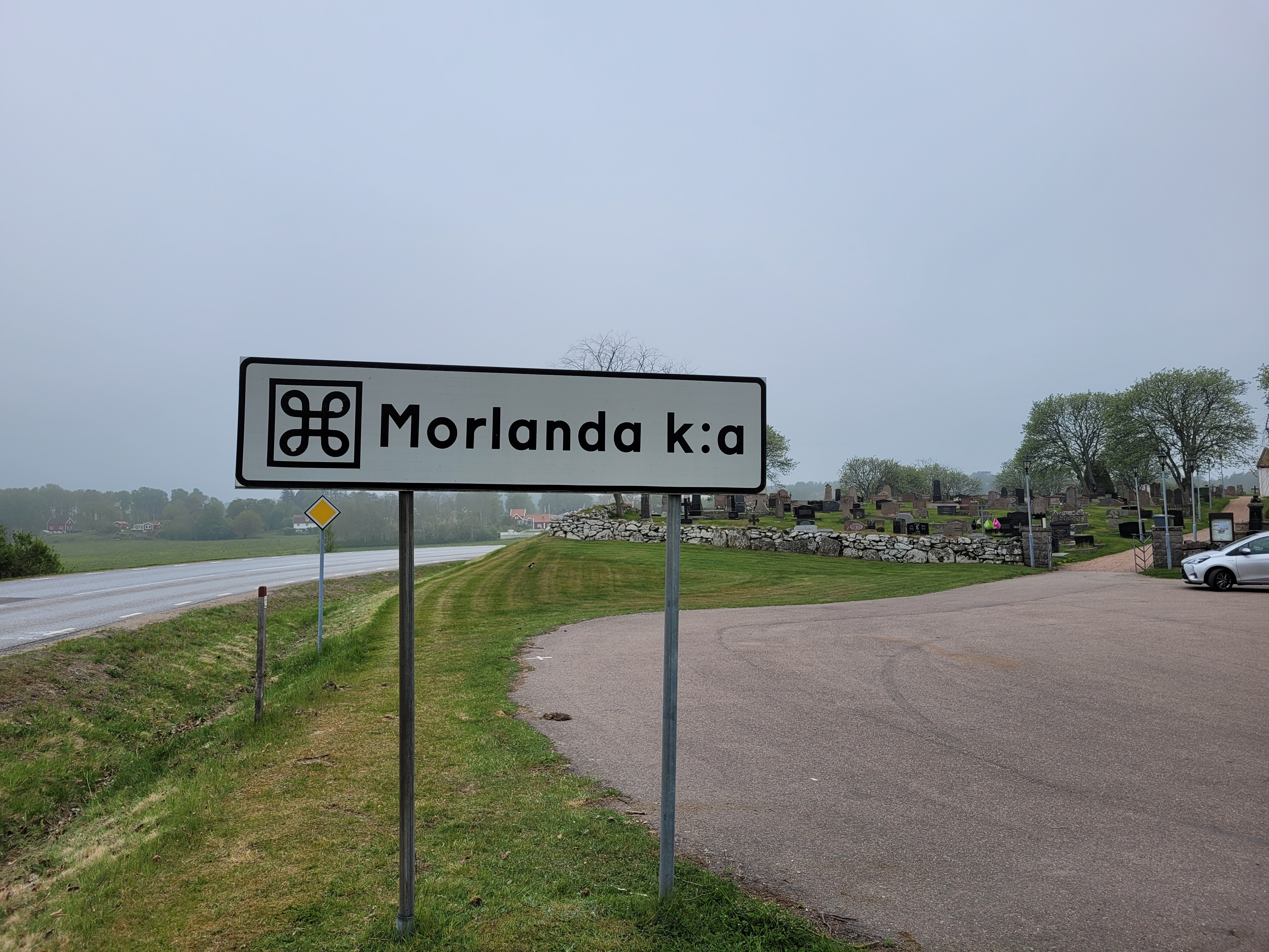 Vid 16-tiden var alla aktiviteter avklarade och jag kunde rulla iväg, denna gång utan passagerare. Det innebar att jag inte rullade speciellt långt utan stannade till utanför kyrkan där det nu var mer stillsamt än efter avslutad predikan då menigheten fyllde utrymmet kring cachen Morlanda Kyrka. Den var snabbt loggad, därefter åter in i Rulle T för hemfärd mot geocachingbasen med åtta nya loggar med mig trots att uppdraget inte var geocaching denna dag.