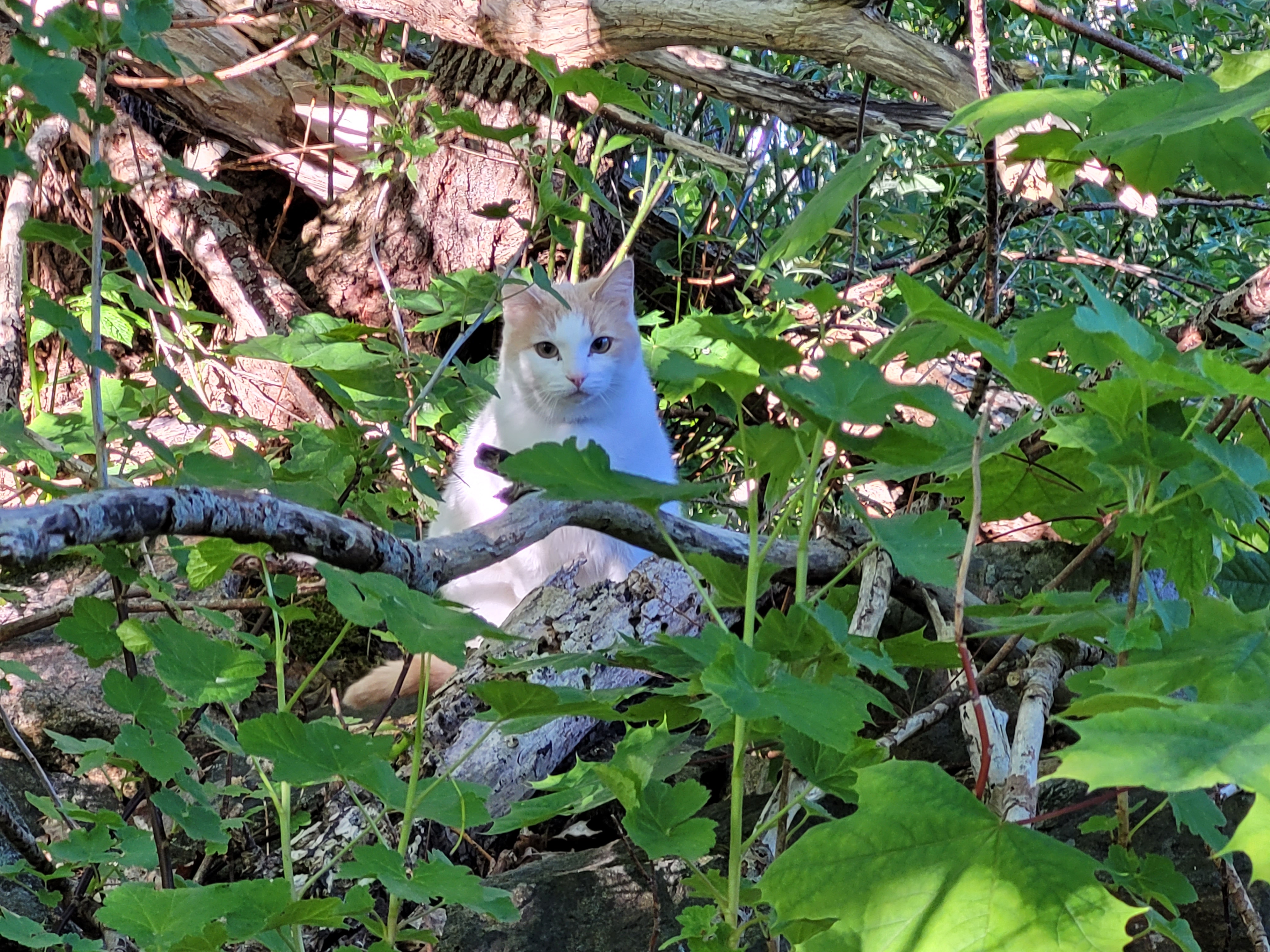 Sista dagen på långhelgen visade sig vädret från en trevligare sida än vad som varit fallet den senaste tiden och en lite utflykt med vandringar var ett givet tema denna söndag. Med Rulle T gick färden mot norr på E6:an och dagens första stopp för att besöka Gales runda till minne av Tjotte-Fia(RutFia). Dessvärre drog jag på mig ett antal DNF:er under denna tur, inte minst ställde enbuskarna till det! När jag som bäst höll på att leta efter en av burkarna i serien upptäckte jag att någon iakttog mig, var jag inte ensam…? Nej, det var en intresserad katt som satt i snåren, jag frågade om det var bekant var burken var belägen – katten rörde inte en min – och jag fick lämna platsen med ytterligare en sur gubbe på kartan. Av 14 möjliga burkar loggades blott 9 i denna trakt. En av dessa DNF:er var dock inte en del av ovan nämnda runda.