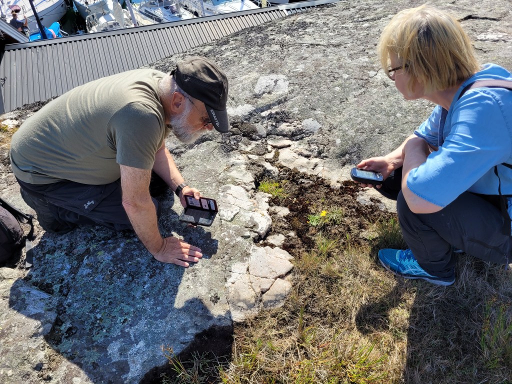 Det var inte många steg till dagens första Earth cache, Kvarts & Erosion på Vinga – Earthcache. Där fick vi studera den hårda ytan som vi gick på lite närmare och besvara ett antal frågor.