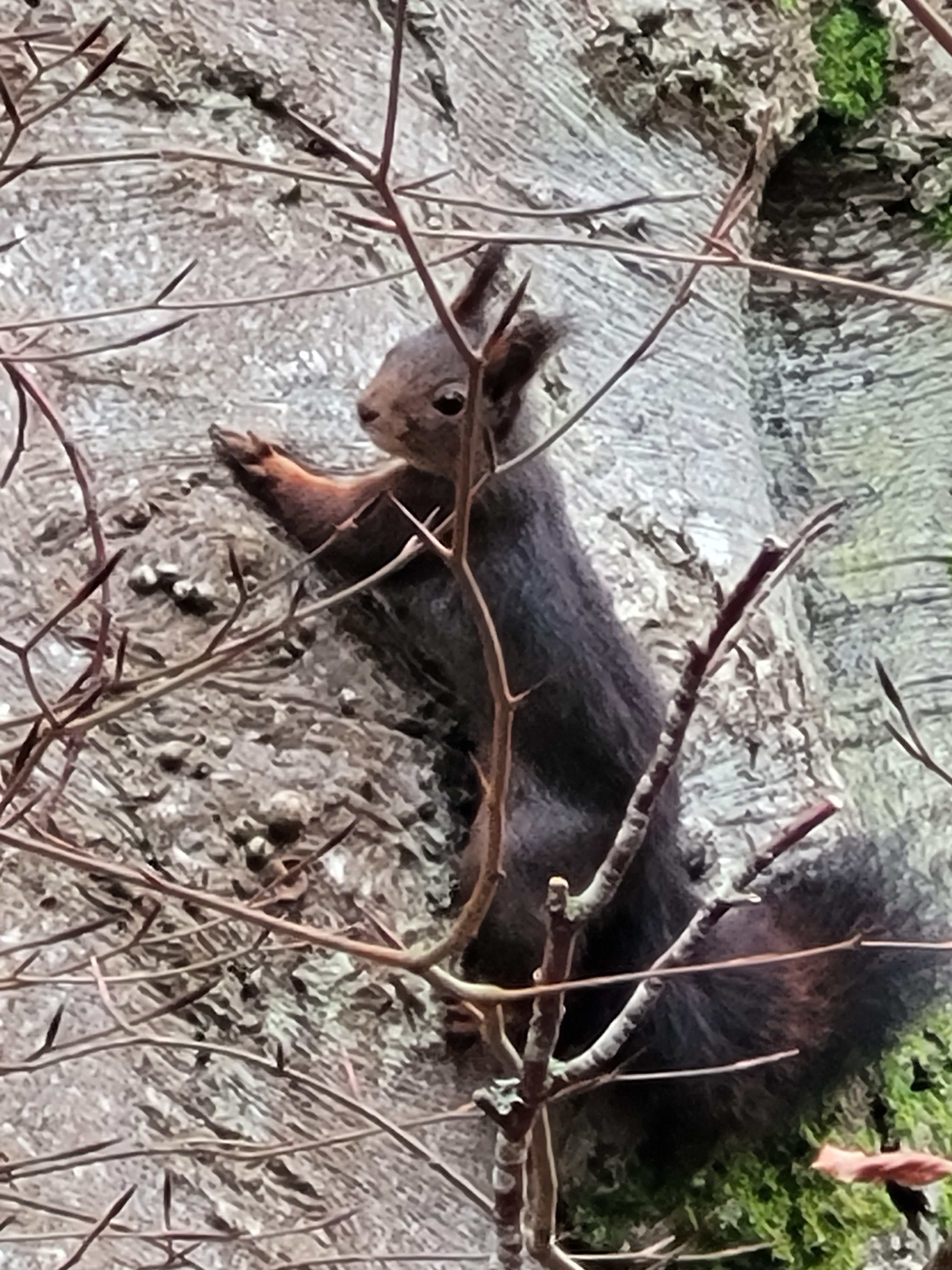 Det mesta loggades framgångsrikt, förutom en burk där det blev DNF. Sådana tar som ni alla vet extra tid så något mer stopp innan eventet blev det inte. Istället rullades det vidare österut i god fart. Väl framme vid Nääs slott parkerades rulle och jag hann med en liten kort sväng kring byggnaderna innan det var dags att gå till eventplatsen. På vägen mötte jag en varelse som jag trodde skulle till eventet, men varelsen med yvig svans var mer intresserad av att jaga en annan likartad varelse högt upp i träden. Tänk vilken tillgång en ekorre skulle vara vid geocaching, om man nu bara kunde få dom att fokusera på uppgiften!