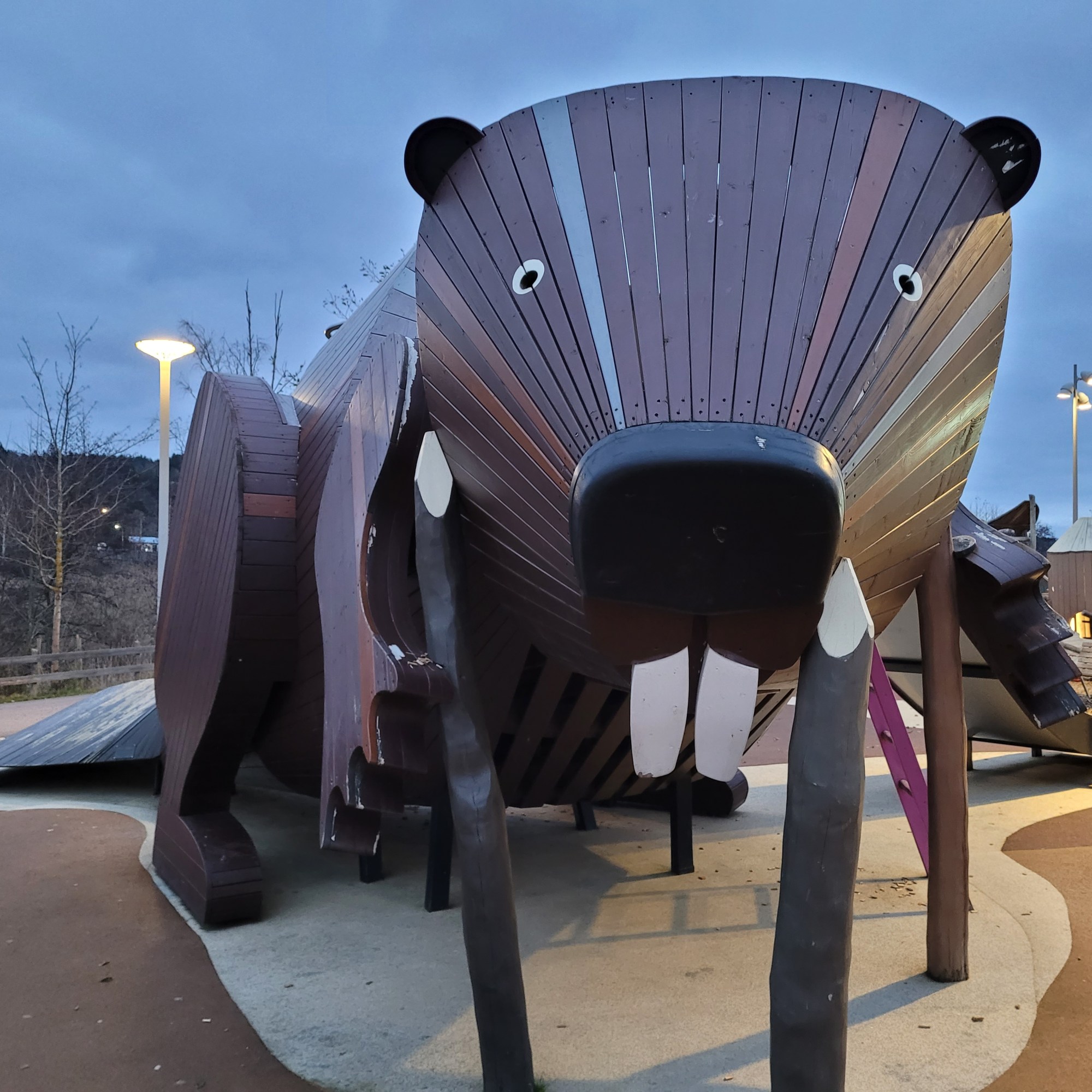 Det var något kylslaget när jag klev ur Rulle T i Partille centrum denna andra advent. Jag tänkte mig ut på en kortare promenad, både hit och dit i jaken på två ALC rundor som kom ut i samband med ett event för några dagar sedan, som jag tyvärr inte hade möjlighet att närvara på. Men rundorna fanns givetvis kvar så jag började med att bekanta mig med en jättebäver(!) innan jag svarade på den första frågan, allt hade ett humoristiskt tema, sicket skämt. Det gällde att tänka på rätt sätt och och google till hands för att hitta rätt, men då gick allt lekande lätt. Jag började med Hit med tillhörande bonus innan jag gick dit och även den med tillhörande bonus. Hur lustig kan man bli, undrade jag till slut! Men jag kände inte någon olust när bonusen var loggad, tvärtom, jag kände mig inspirerad att leta upp en burk till. Det visade sig nämligen att Rulle T stod parkerad mycket nära en gammal DNF från 2018, den skulle nu letas upp! Letandet tog inte lång tid, snart var burken, GNK Power droid, funnen och jag undrar hur den kunde undgå mig vid mitt förra besök. Därefter kunde jag åter kliva in i Rulle T och få upp värmen i mina stelfrusna fingrar och färdas tillbaka mot gecocachingbasen efter denna lilla miniutflykt.