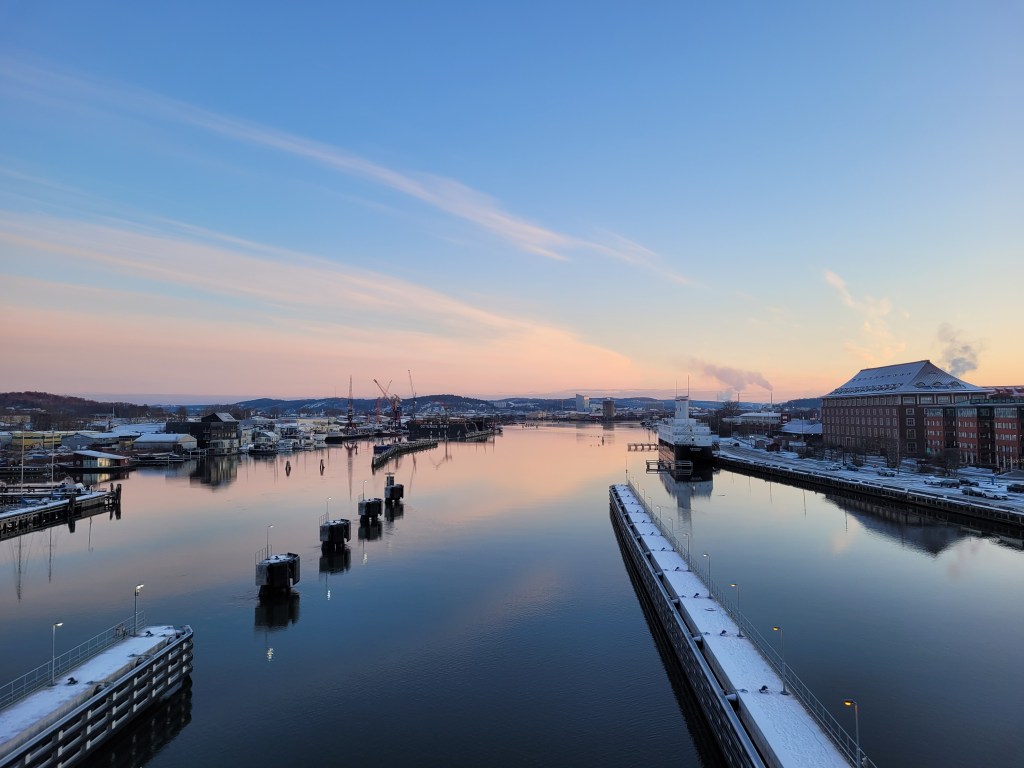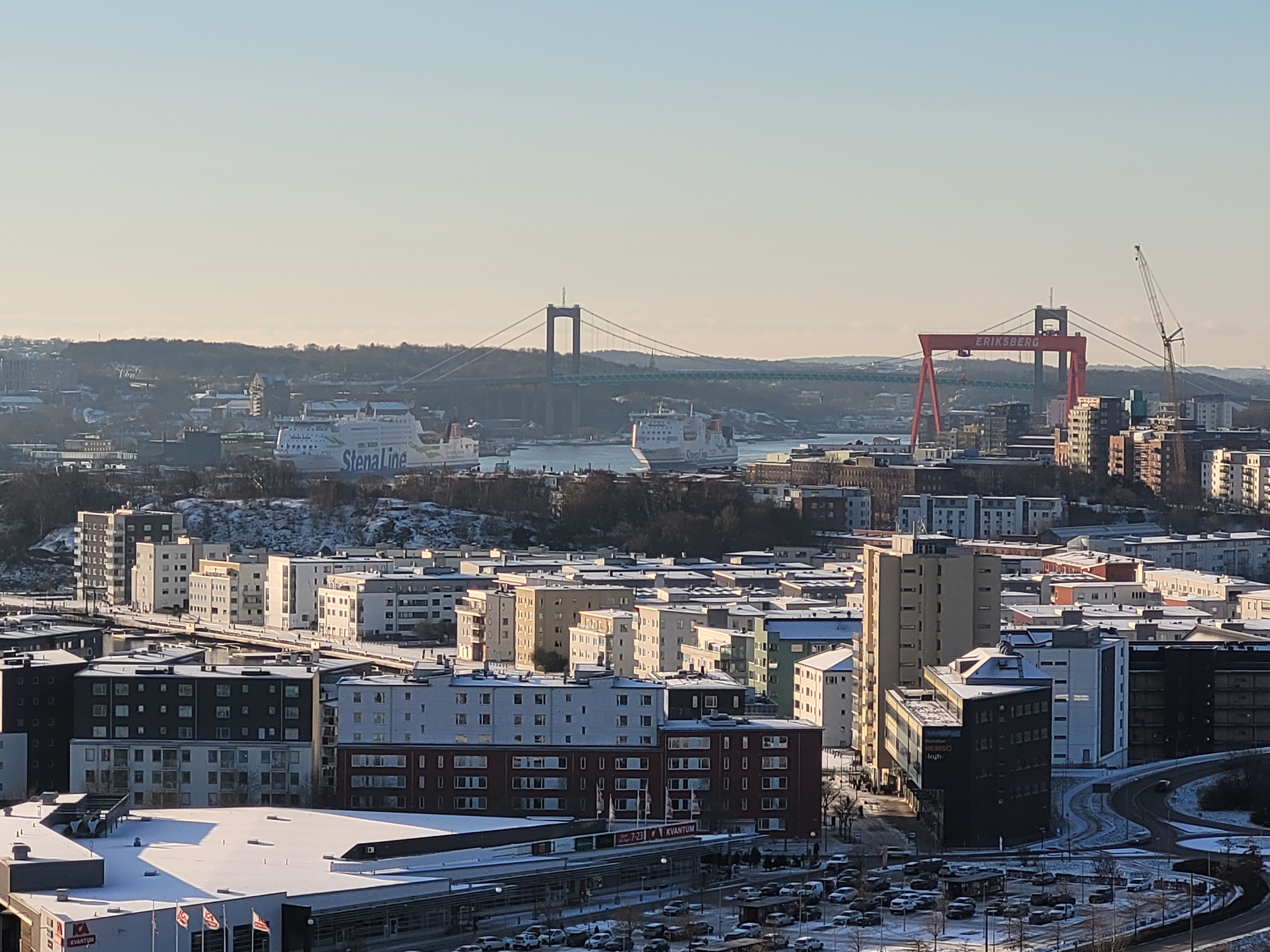 Med denna runda avklarad fick jag åter bege mig ut i det ovanligt kyliga vädret för att gå över hela Hisingsbron, faktiskt första gången jag passerat över hela bron till fots. Det var inte mycket trafik, inga cyklister och endast en fotgängare var synlig på uppströmssidan av bron denna förmiddag.
