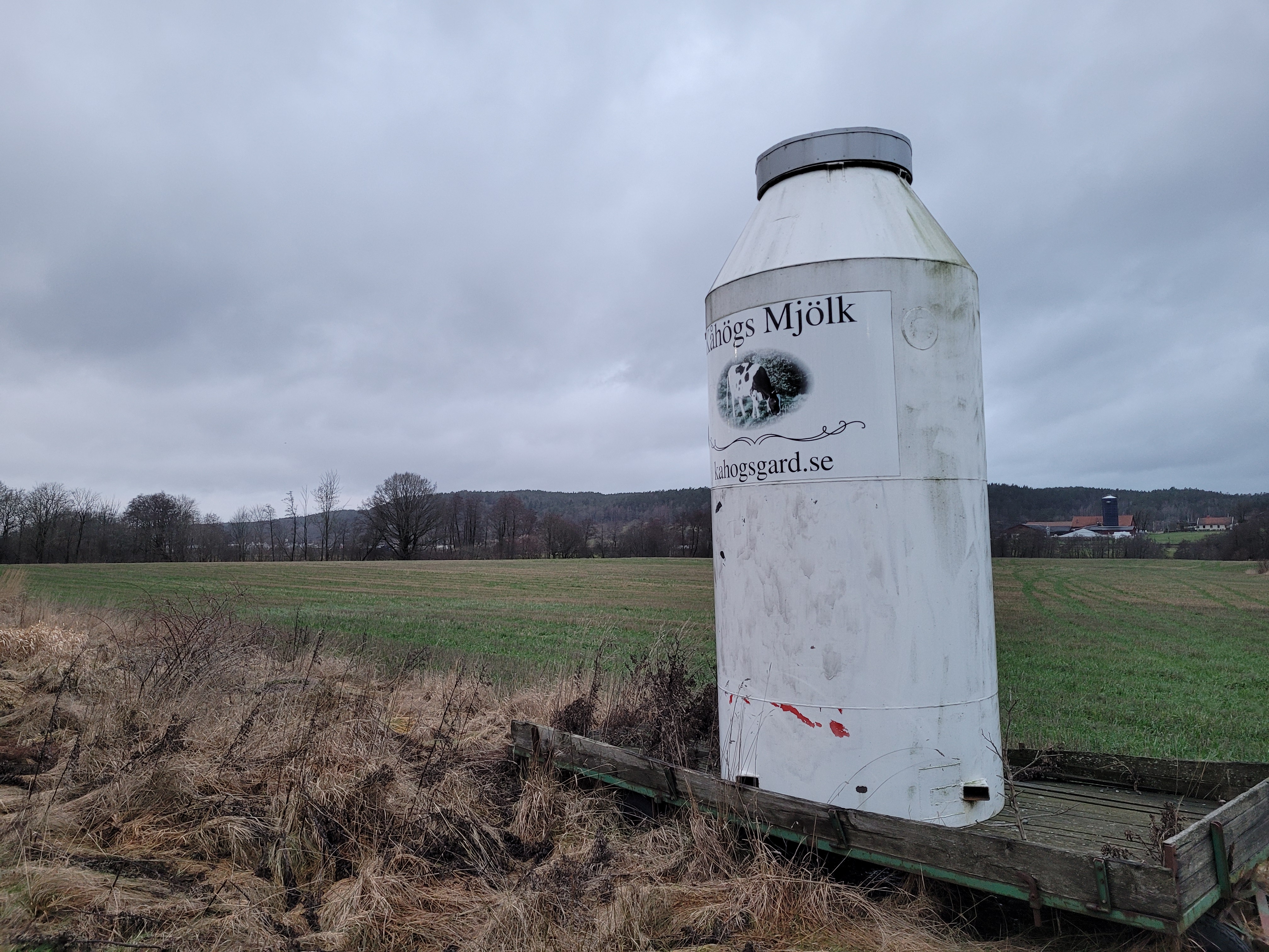 När den känsliga övningen var avklarad så tyckte jag att påskmaten borde sköljas ned med lite mjölk så jag gick mot en burk som jag ofta ”sett” från motorvägen men först nu bestämt mig för att logga, nämligen Mjölkpallen.