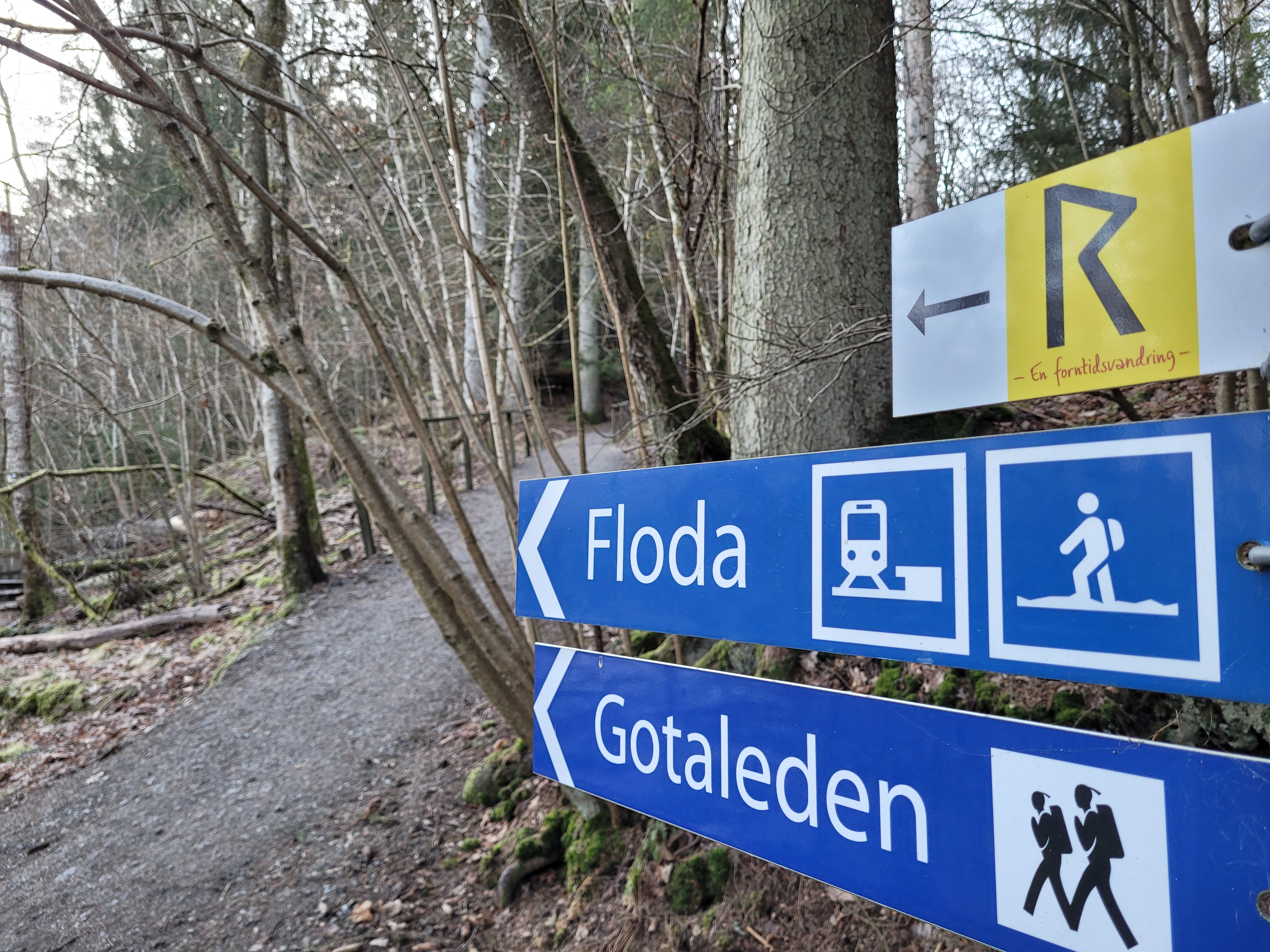 Vandringen fortsatte nu utmed Säveån och det blev även en avstickare å andra sidan för att logga Fiske 1. Gotaleden som går förbi cachen hade många besökare i dag, mugglare överallt. Men just när jag loggade cachen var det dock lugnt. Därmed var dagens sista burk hittad och jag styrde stegen tillbaka mot Rulle T som väntade på parkeringen.