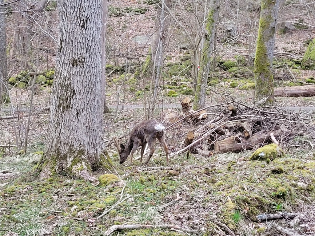 Dagens geocachingtur skulle ske helt och hållet till fots med start och mål vid geocachingbasen, givetvis. Dagens första mål var inte att logga en cache, det var att lägga ut en ersättningsburk då elakartade mugglare stulit cachen Natursalen i Skatås. Det var inte bara min cache som mugglarna förstört, många av skyltarna i utomhusutställningen var också förstörda. Det är bara att hoppas att natursalen får vara kvar, men den har förfallit under lång tid så man kan misstänka att den försvinner för eller senare. När underhållet var avklarat gav jag av genom skogen och stötte givetvis på en av traktens råbockar, höll nästan på att snubbla över honom, råbockarna flyttar inte på sig förrän man säger ifrån på skarpen!