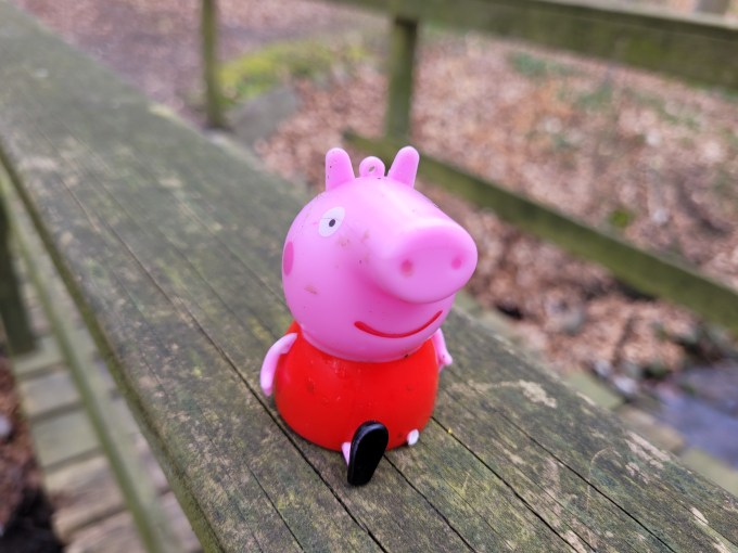 Via bron över järnväg, motorväg och Mölndalså tog jag mig västsidan av dalgången och letade upp Petroleum Tango #415, den hade en så blöt loggremsa att jag fick ta till fotologg. Därefter var det en liten transportsträcka till Nöff Nöff Nöff. Den hittades snabbt, när jag stod och loggade burken kom en mugglare med hund över bron, han såg ut som om han trodde att det var något skumt på gång, men jag hälsade glatt, han kunde då inte annat än att hälsa tillbaka och fortsätta med sitt lurviga djur.