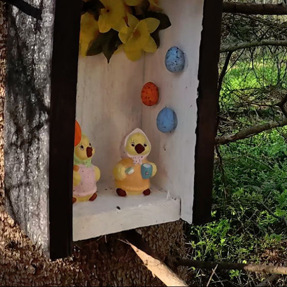 Efter framgångsrik loggning styrdes Rulle T vidare mot Jonsered där en kortare skogspromenad skulle genomföras för att leta upp några påskrelaterade burkar.