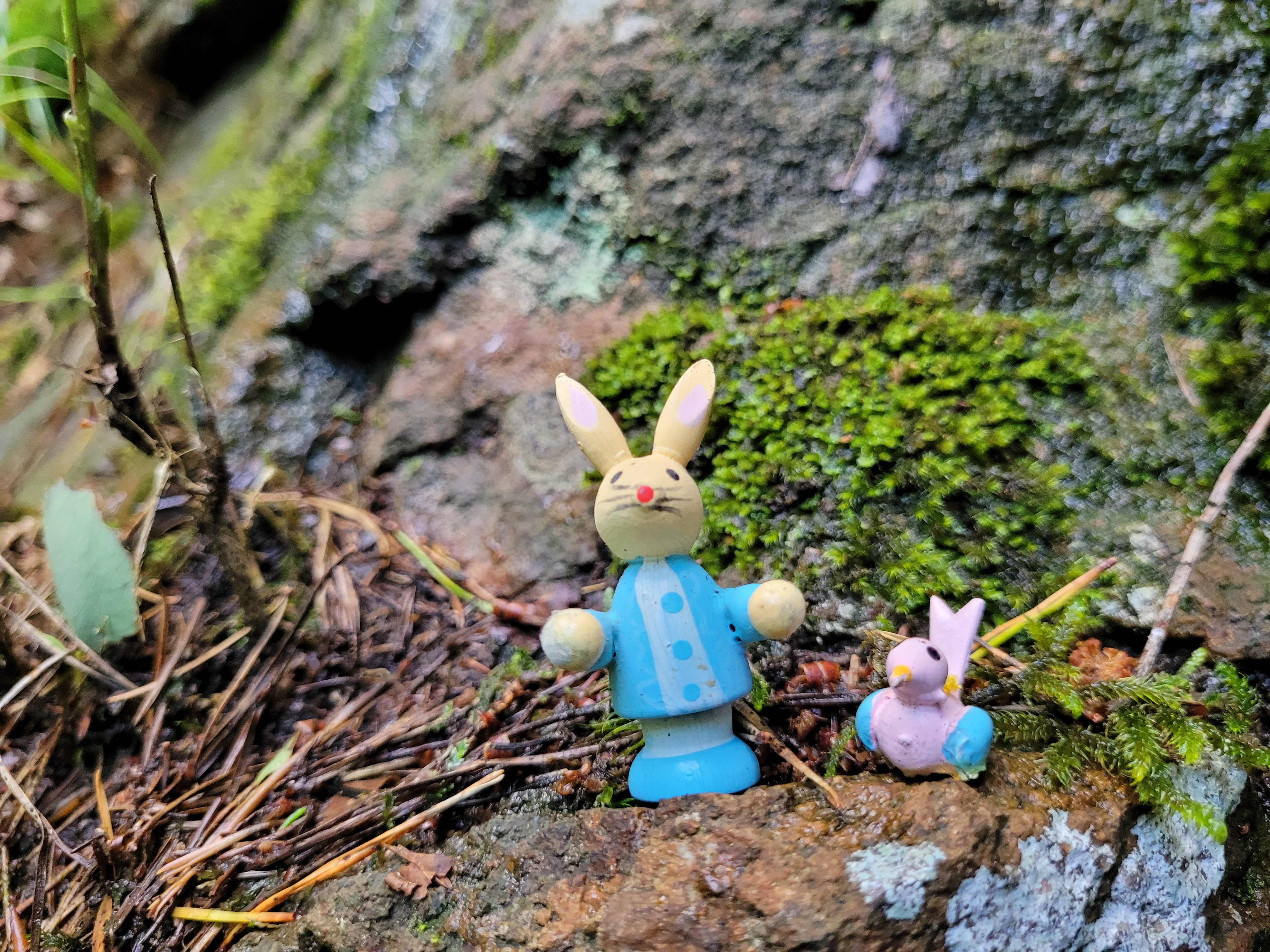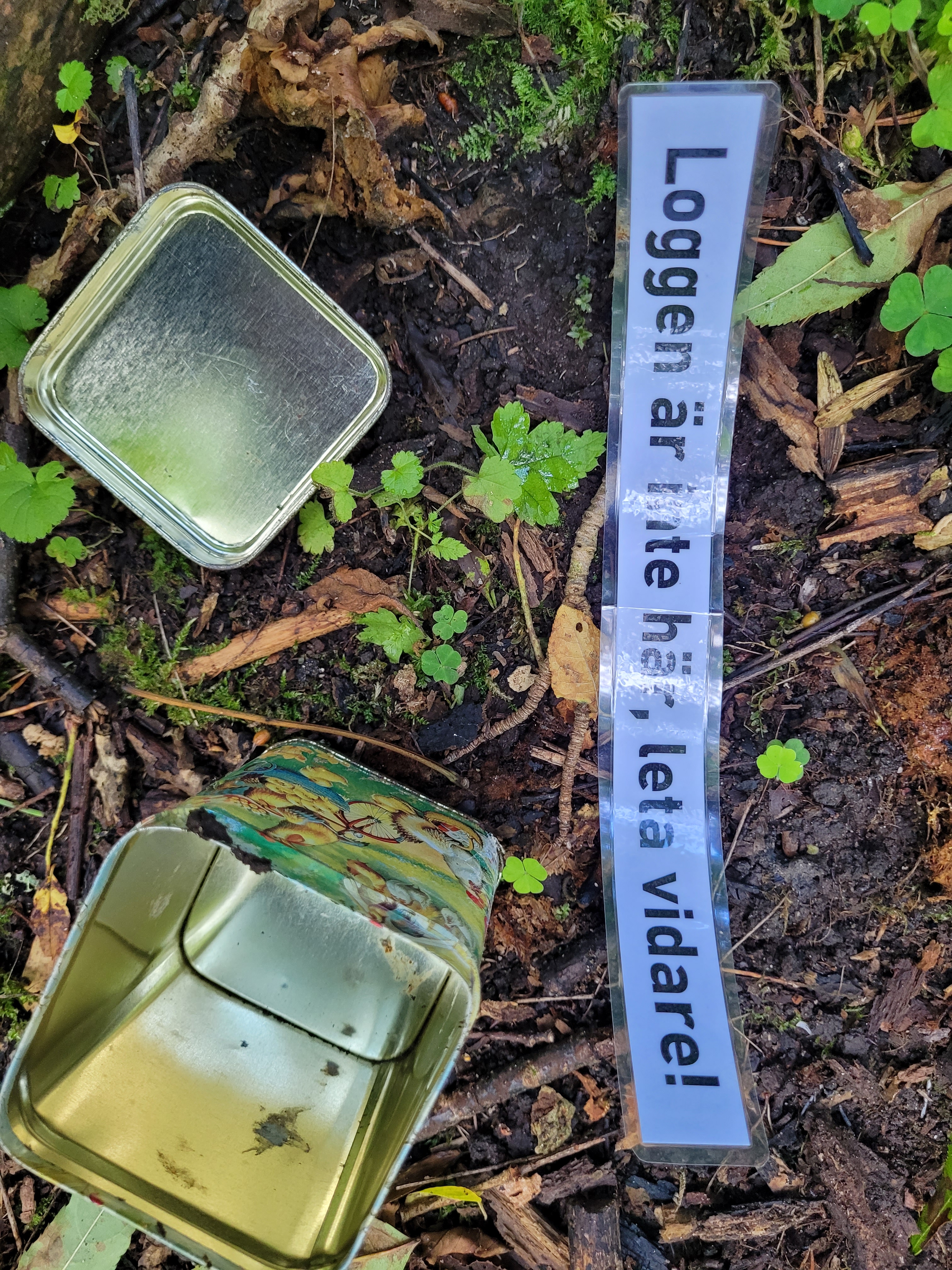Det var nu dags att ta sig an en utmaning, multin Annandag påsk Påskvatten. PiP 2023. Det hela visade sig fungera och jag började snart leta vid finalplatsen som krävde att man trängde sig igenom en del grönska. Men på håll såg jag något som verkade misstänkt, ibland är denna instinkt när det gäller gömmor en bra sak att lita på (dock inte alltid….). I detta fall visade det sig riktigt och jag möttes av ett antal påskrelaterade föremål (givetvis).