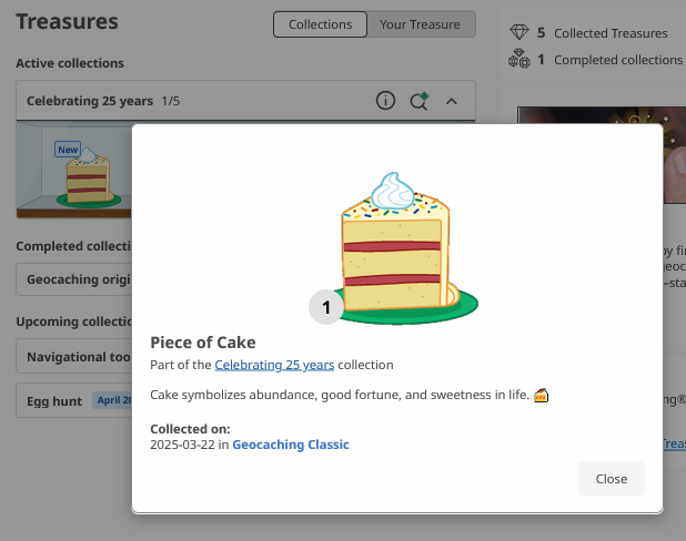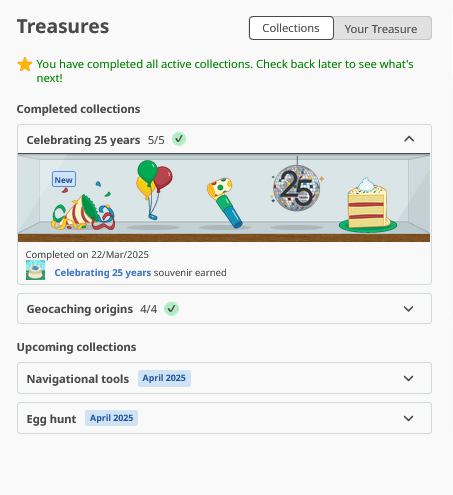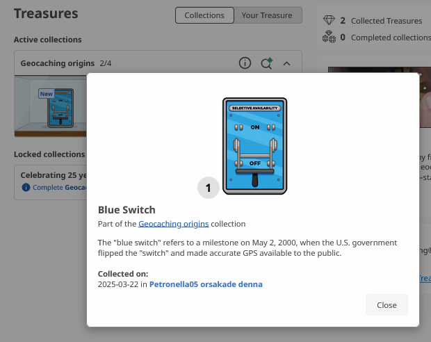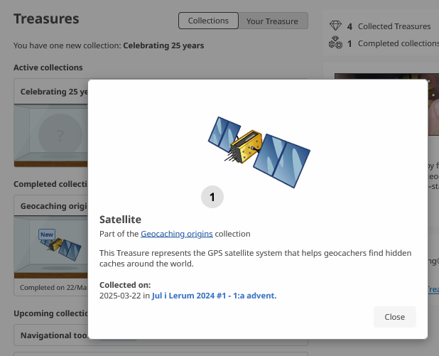 Slutligen hade jag loggat så många skatter som tydligen krävdes för att det skulle anses att uppdraget var utfört. Nya uppdrag för att hitta ”skatter” skall tydligen komma under april.