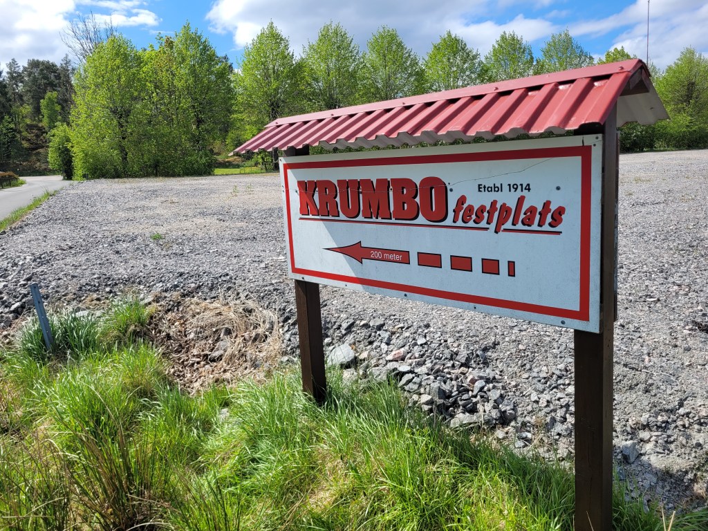 Promenaden gick sedan vidare mot en riktig festplats, Krumbo, där vägvisaren in mot festplatsen bjöd på ännu en logg. Vid själva festplatsen var det dock aktivitet med hantverkare så där fick jag avstå från att söka, men det kanske var lika bra det då det redan ligger ett par DNF loggar på den cachen.