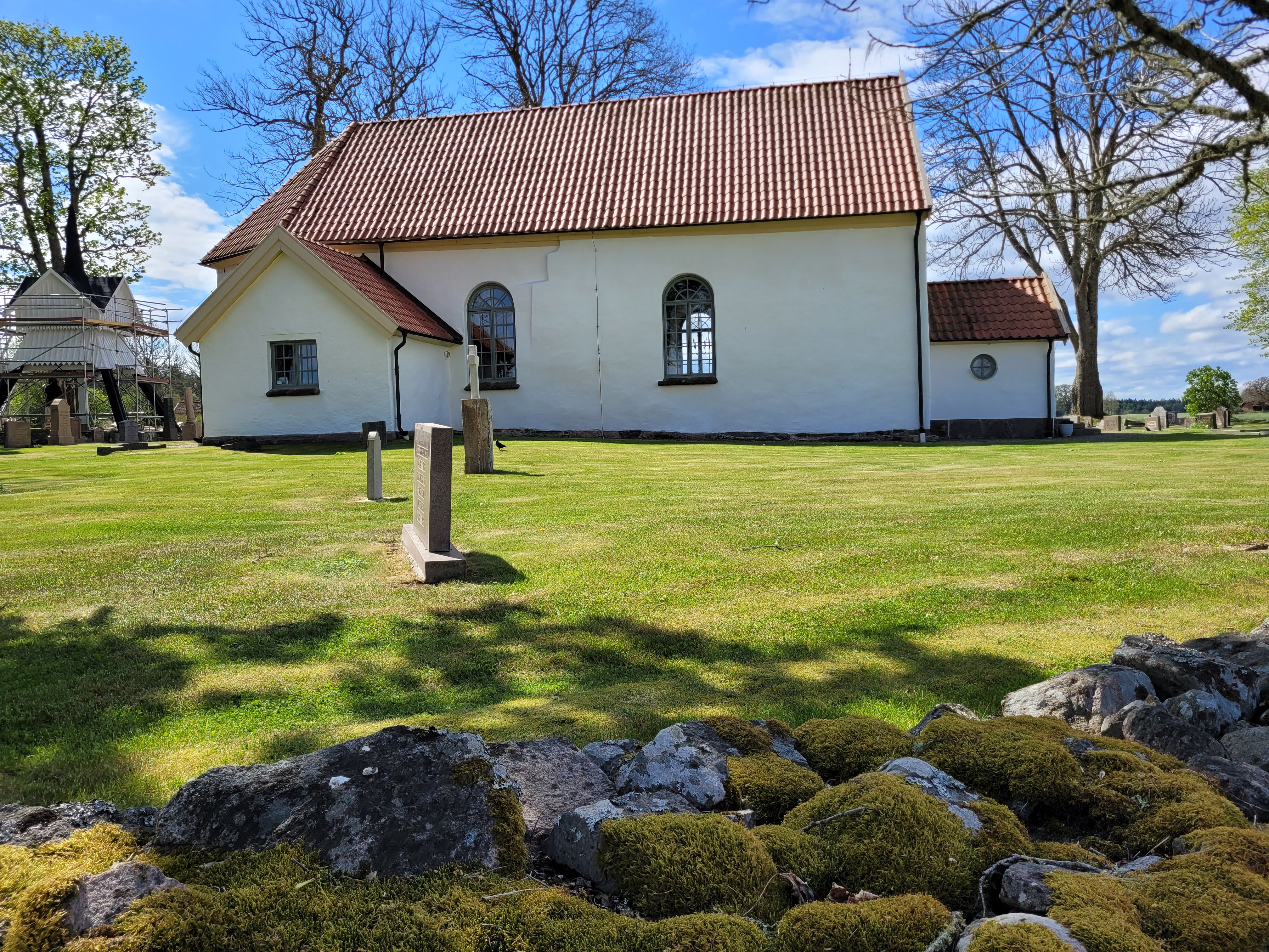 Några korta geocachingsteg bort reste sig kyrkan och även den var försedd med en cache så som sig bör och efter lite rotande och funderande hittades även den fram.