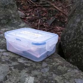 • Geocachare som försöker logga en burk